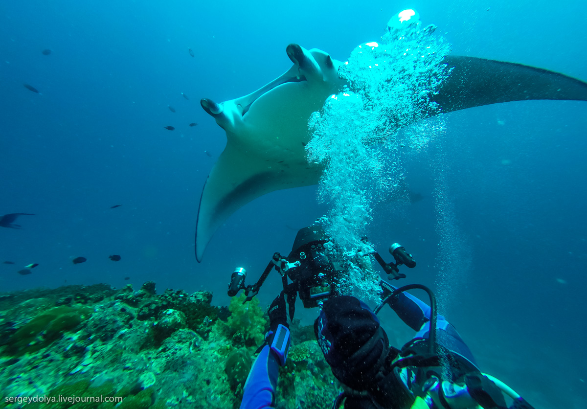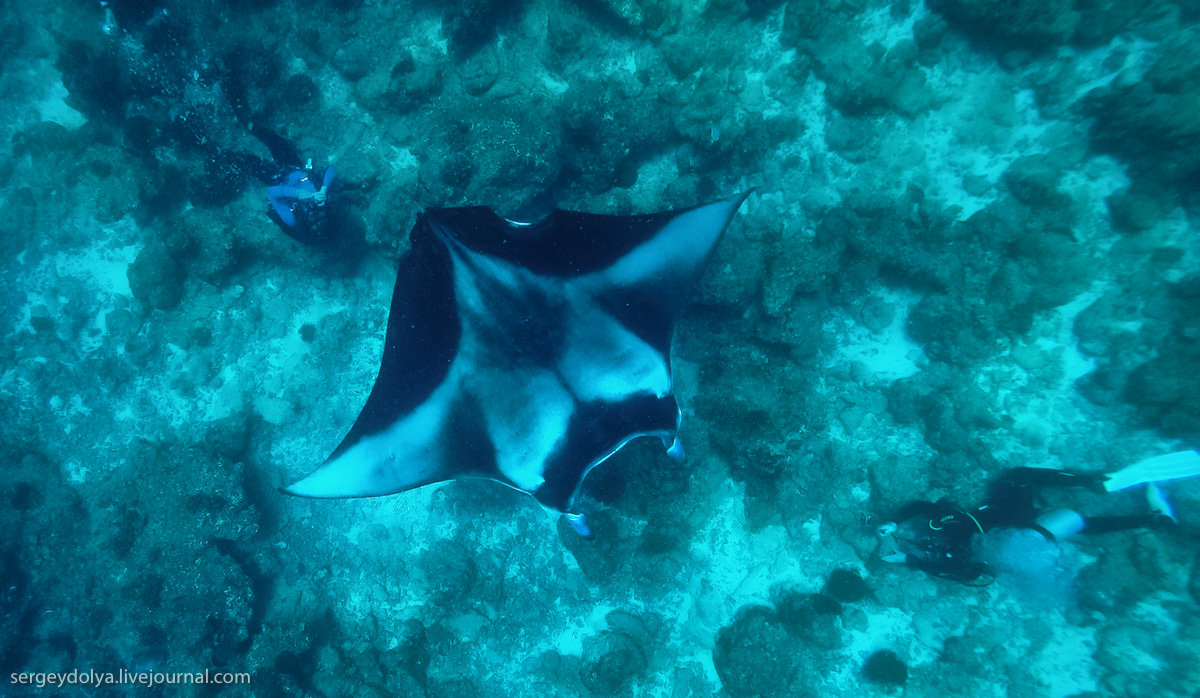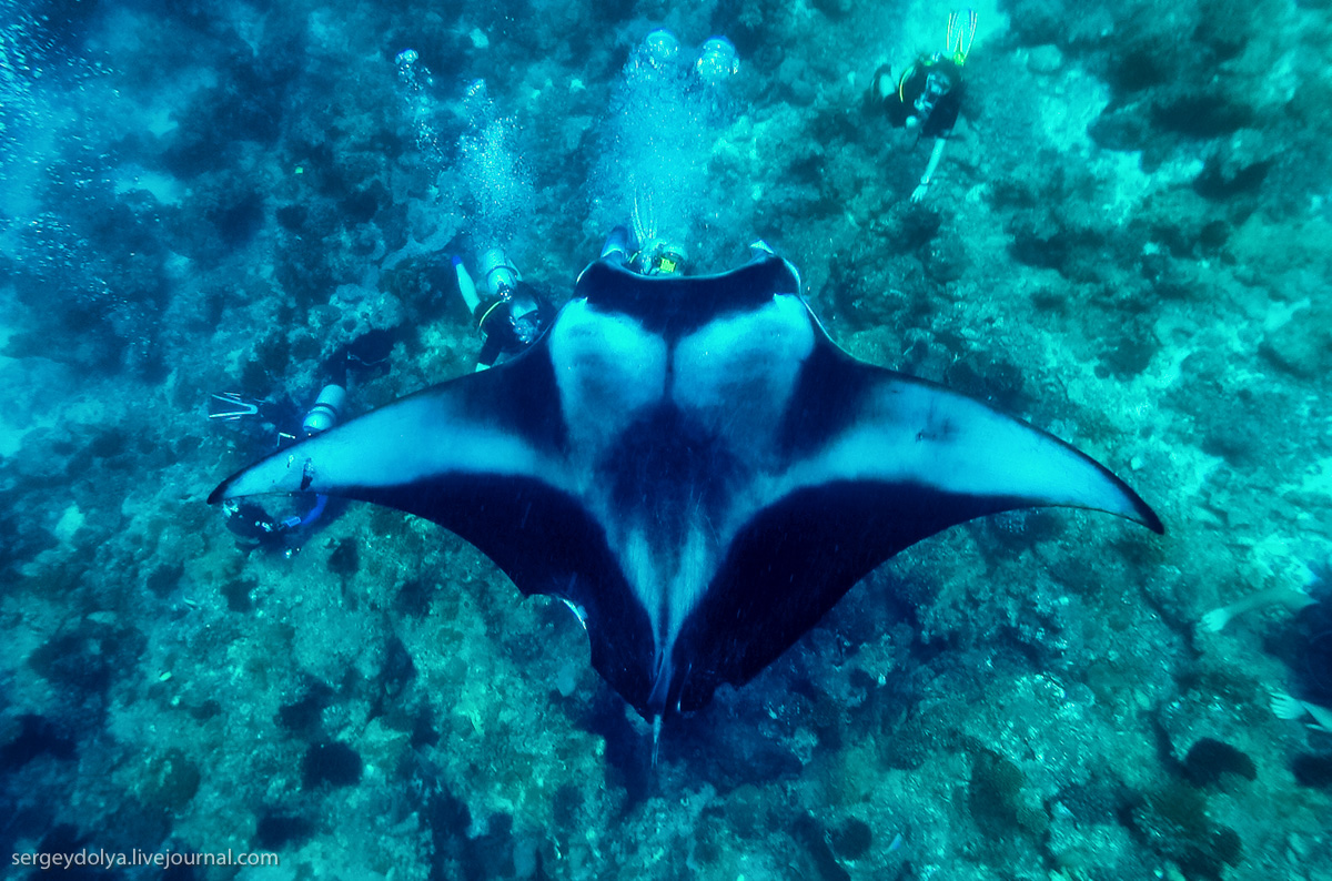 Манты — удивительные создания. И речь, конечно, не о традиционных азиатских пельменях — я говорю про скатов, которые обитают на Мальдивах. Совершено непонятно как эти инопланетные твари вообще оказались на нашей Земле, настолько они необычны и непривычны для человеческого глаза. При этом, манты очень дружелюбные и с огромным удовольствием играют с людьми.