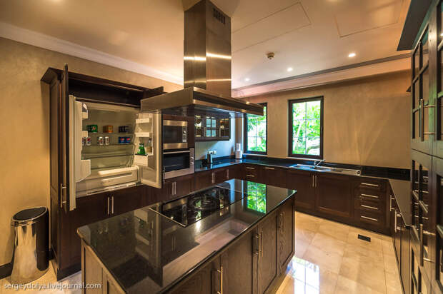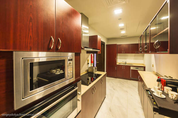 Небольшая кухня. Она скорее для прислуги, гости обычно заказывают еду в номер из ресторанов: