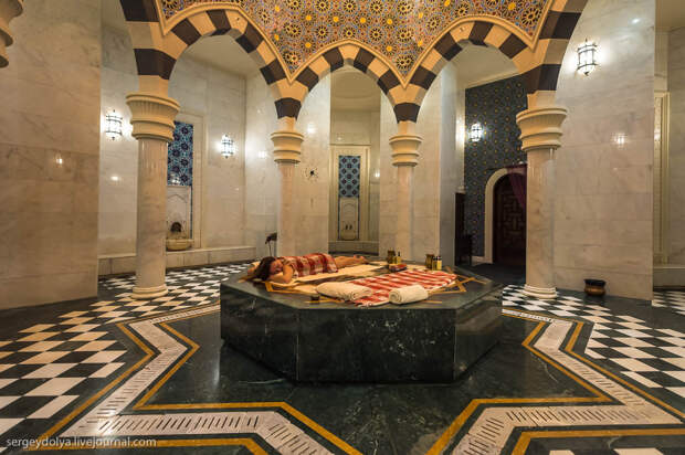 Самый большой и роскошный СПА на Ближнем Востоке находится в Jumeirah Zabeel Saray. Это элитный отель, расположенной в западной части легендарного острова "Пальма". Talise Ottoman Spa занимает 8000 кв.м, выглядит как дворец и включает 42 процедурных кабинета, парные, сауны, снежные комнаты и три турецких хаммама. ..