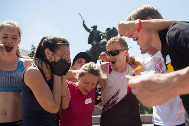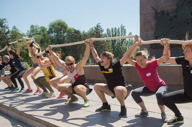 Вкратце объясню правила: мы приглашаем полсотни желающих ЗОЖников и предлагаем принять участие в двухдневной фитнес-битве. Это спортивные состязания, разные в каждом городе. В первый день мы отсеиваем примерно половину людей, а во второй день разбиваем оставшихся на две команды, которые бороться друг с другом. Команда победителей (10 человек) поедет зимой в Москву, чтобы сразиться с командами других городов. Таким образом мы определяем самый здоровый и сильный город в России.