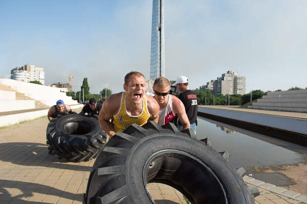 А вот парням шины нужно кантовать: