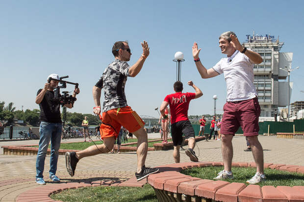 В каждом городе наша съемочная бригада проводит 4 дня. В первый день мы приезжаем и изучаем городские локации, которые заранее подготовил продюсер. Во второй день начинаем съемки города и коротких роликов на тему местного ЗОЖа. Спортзалы, яхт-клубы, стадионы и все в таком духе. В Ростов-на-Дону, например, я по легенде прилетел на дельтаплане:
