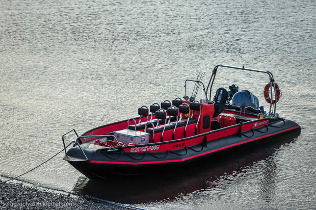 Кстати, все наши передвижения по воде происходят на таком красавце-катере. Очень удобный, надежный и устойчивый: