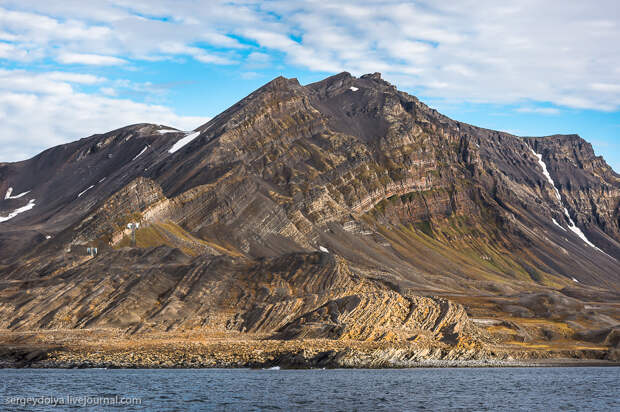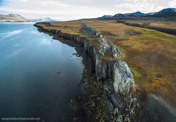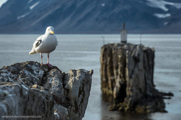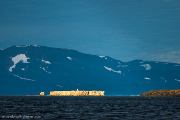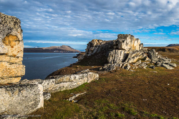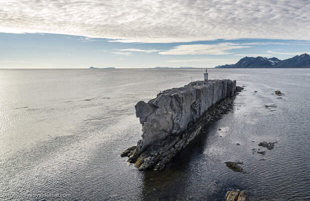 Наверху небольшой маяк. На его фоне русское поселение Шпицбергена: