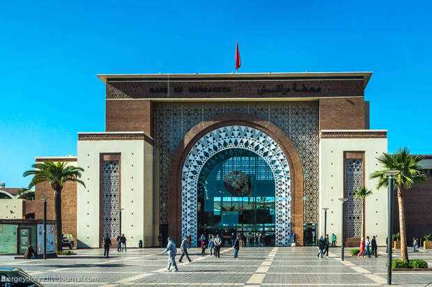 Железнодорожный вокзал Марракеша. Кто-то подметил, что он чем-то похож на Сочинский: такой же новый и красивый, при том что город сам по себе весьма обшарпан: