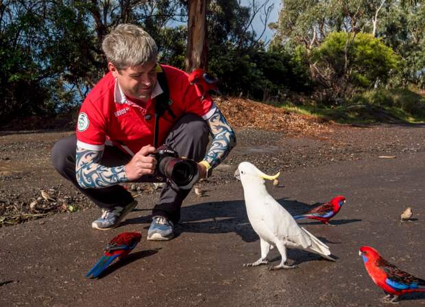 Сегодня меня атаковали попугаи. Было странно. Мы приехали в лес, искать коал. Нам сказали, что они в этом лесу тусит чуть ли не на каждом дереве. В итоге, колу не видели ни одного, а вот попугаи на нас напали. Они начали слетать на нас с каждой ветки. Оказалось, что место тут прокормленное туристами. На входе в лес можно купить птичий корм и попугаи поджидают путников на лесной тропе.