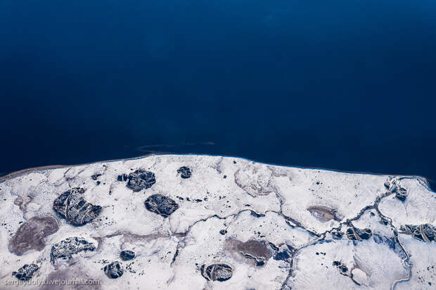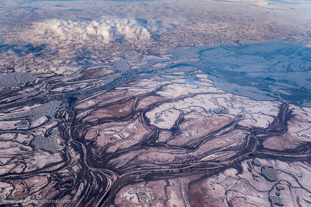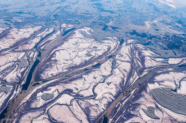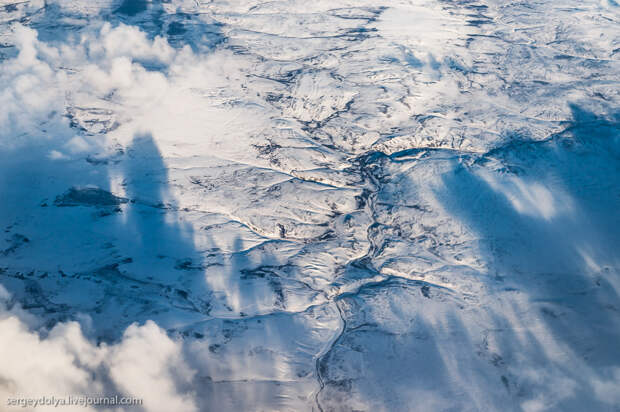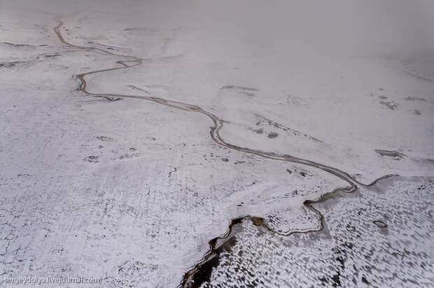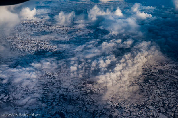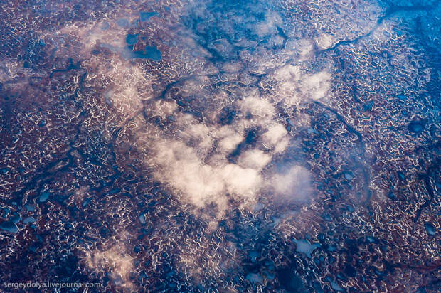 Перелет Архангельск-Варандей. 900 километров над самым севером России, вдоль берега Северного Ледовитого океана. Из иллюминатора видны причудливые узоры. Сегодня предлагаю вам выглянуть вместе со мной из окошка старенького пропелляторного АН-24...