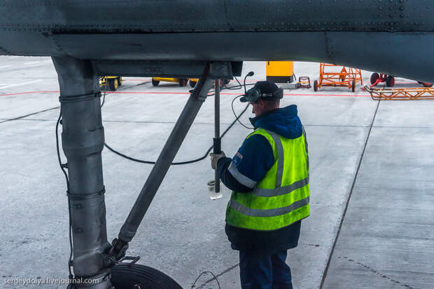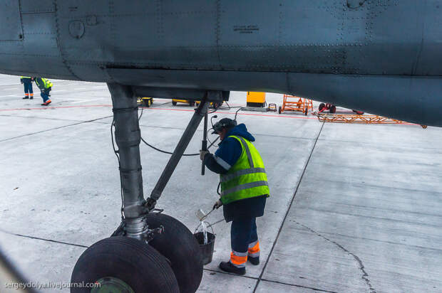 Перед полетом техник сливал какую-то жидкость с двигателя: