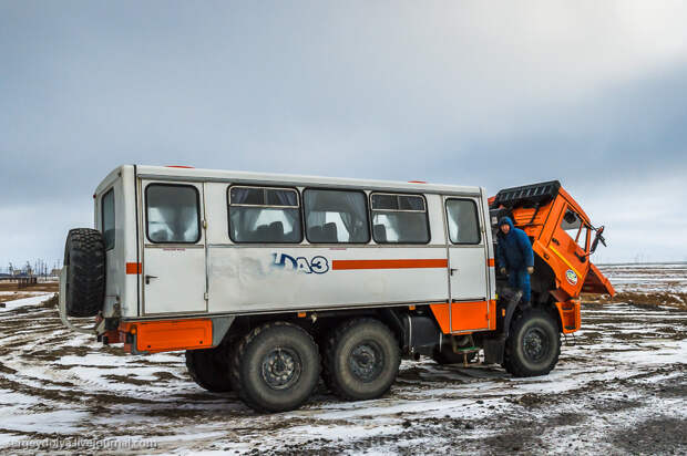 В Варандее мы пересели на вертолет и полетели в сторону Северного полюса на нефтяную платформу "Приразломная". Скоро расскажу! Stay Tuned!