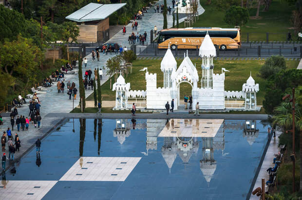 Новогодняя крепость. Красиво подсвечивается ночью: