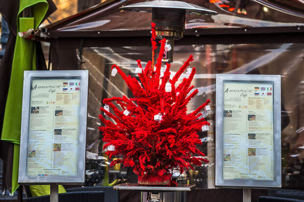 Красная елка на входе в один из ресторанчиков: