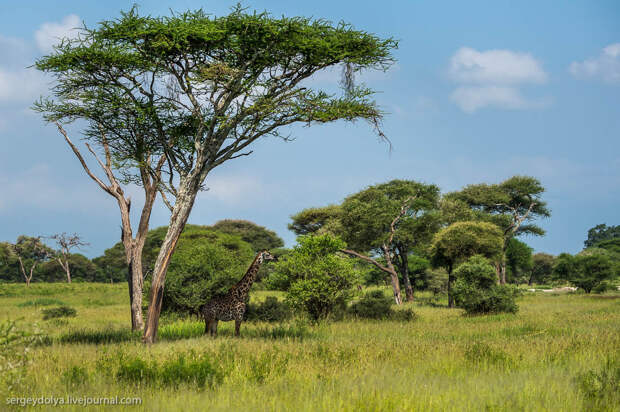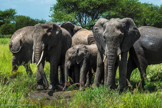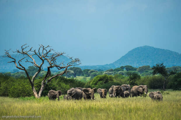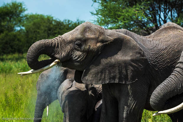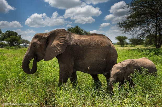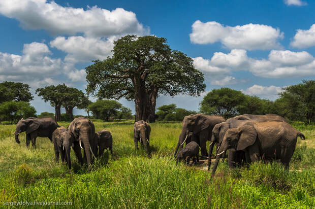Перенесемся из холодной Якутии в Африку, в национальный парк Тарангире. Именно тут самое большое сосредоточение саванных слонов - самых крупных млекопитающих на планете. 100 лет назад у подножия Килиманджаро был застрелен слон с самыми большими бивнями в истории, общим весом около полутонны.
