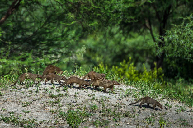 Семейство мангустов переходит дорогу: