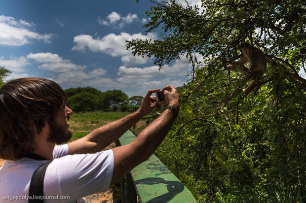 Во время любования слонами следует держать ухо востро. Совсем рядом прячутся наглые обезьяны и ждут, как бы что стащить из машины:
